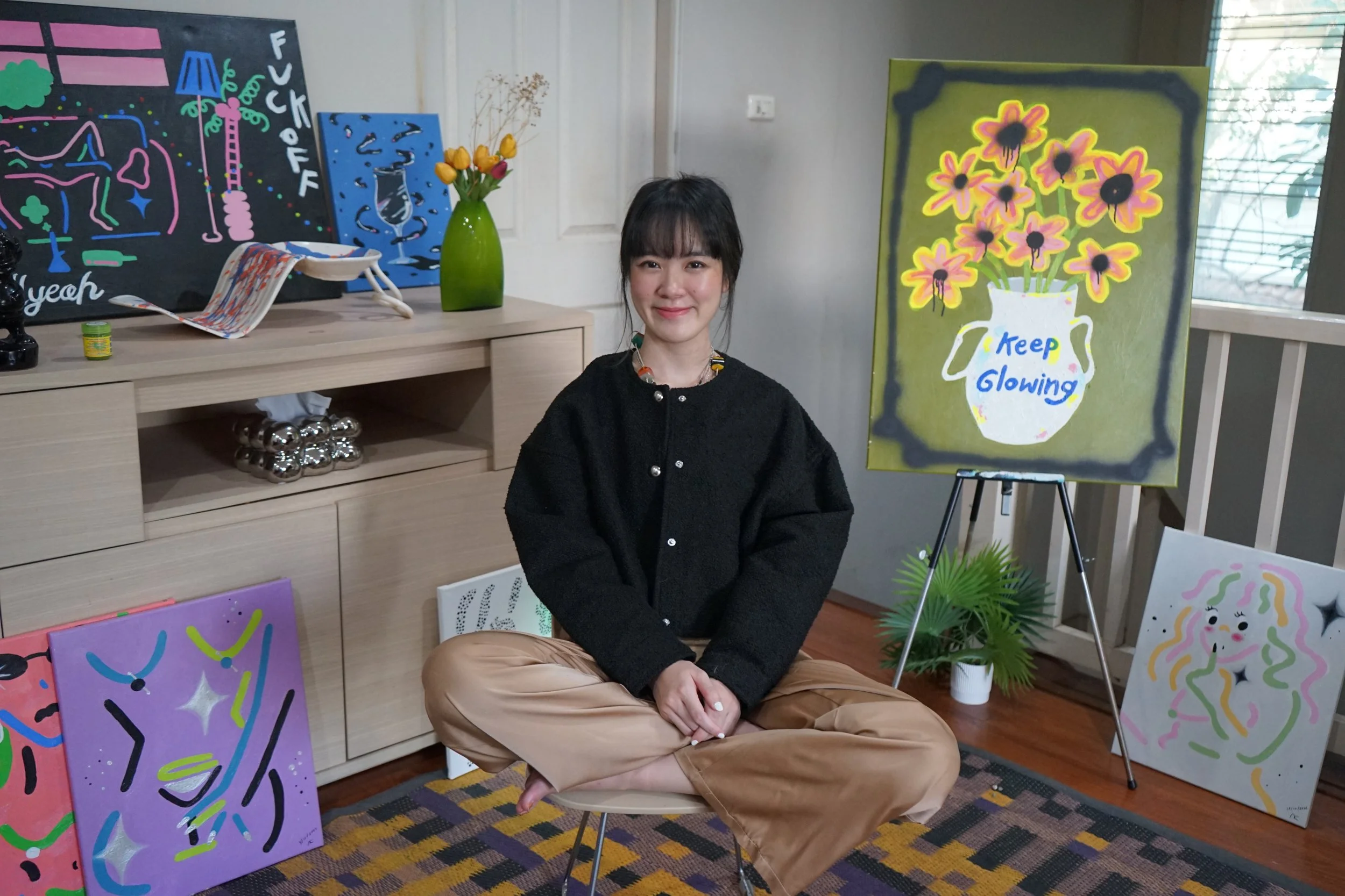 Whether it’s through bold colors, unique lines, or expressive forms, her work consistently reflects her individuality and perspective.
