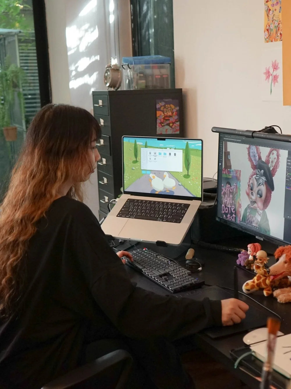 Using Adobe Photoshop, IYA creates striking textures and vivid colors. She hopes her art sparks humor and dark comedy, encouraging viewers to value and support artists.