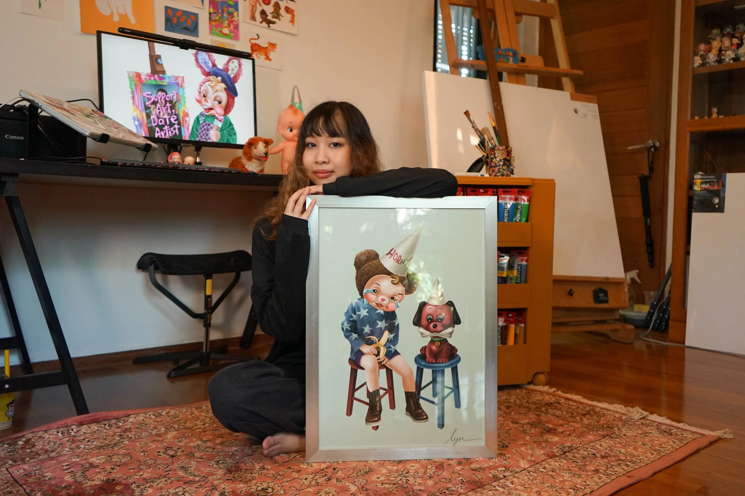 IYA’s work is deeply influenced by her love for animals, nature, fashion, dolls, and vintage objects. These elements frequently appear in her art, helping her craft vibrant, pop art-inspired compositions with a surrealist touch. Each piece tells a story, often reflecting themes like festivals, childhood memories, or social issues.